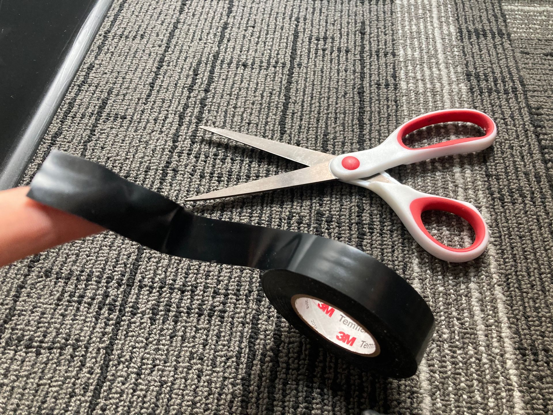- Using a razor blade or box knife, very carefully cut the electrical tape holding the cables in place.